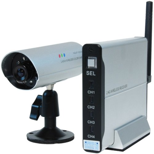 300-FT WIRELESS TRANSMISSION RANGE CAMERA INCLUDES INTEGRATED RECHARGEABLE LITHIUM BATTERY FOR UP TO 5 HOURS OF OPERATION AUTOMATIC INFRARED ILLUMINATION PROVIDES B&W IMAGES IN LOW LIGHT (12-FT RANGE) LISTEN AUDIO MONITORING 4 CHANNELS AVAILABLE CONNECTS DIRECTLY TO MOST TVS OR VCRS EASY TO INSTALL & OPERATE